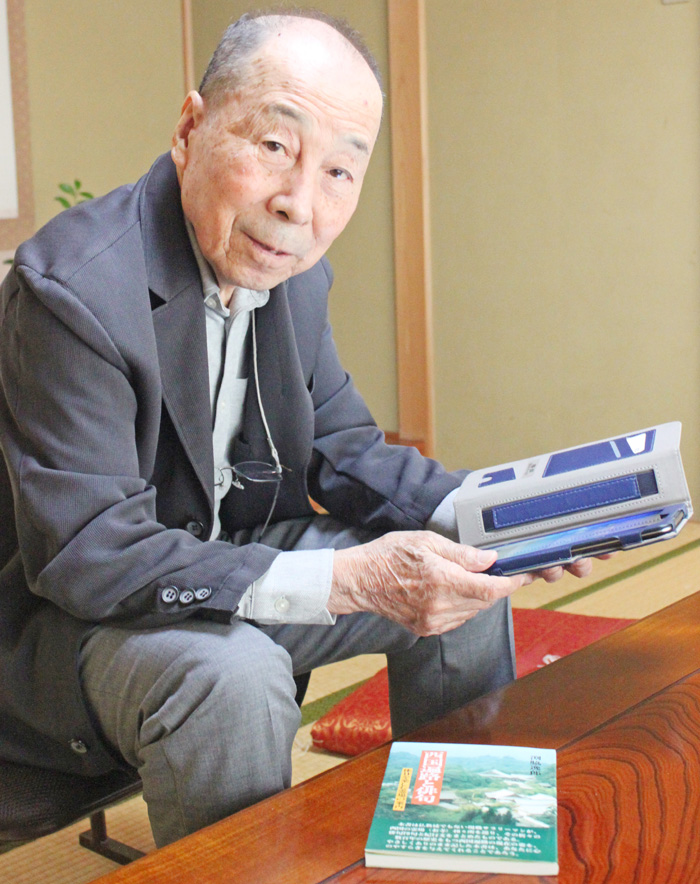 「目を閉じても 壺阪寺の 紅葉かな」。名張市さつき台2番町の渕脇逸郎さん(80)がこのほど、「俳句と社寺散歩『趣味と運動を楽しむ』」を東京の出版社「22世紀アート」から電子書籍として出版した。【電子書籍を読み返す渕脇さん】