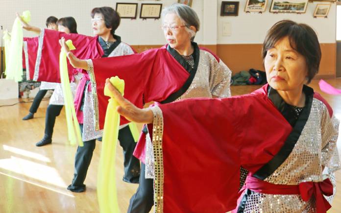 2013年に設立した同チームは、同地区の公民館を拠点に月2回活動。3B体操や忍者の動きを採り入れた地元の創作体操「忍にん体操」などで体を動かし、ボランティアとして他地域のサロンでダンスの披露などをしている。