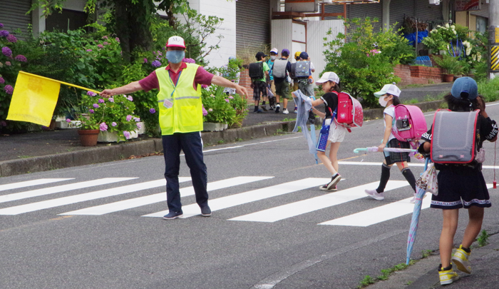 発足20年目の同会は、40代から80代のボランティア会員17人が活動。登下校時に交差点や横断歩道など交通量が多く危険な地点に立って通学の様子を見守り、校区の巡回パトロールも定期的に実施している。