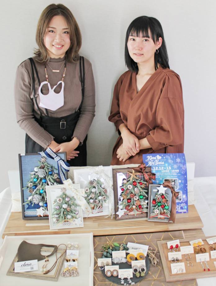 同フェスタは12月12、13日午前10時から午後4時まで、同瀬古口の商業施設「ハートアイランド」で開催。入場無料。2人の出展は13日のみで、ピアスやヘアクリップの他、手軽に飾るクリスマスツリーなど約300点が並ぶ予定だ。