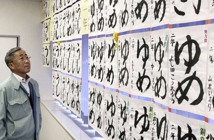 会場では「初夢」「辛丑の年」など、部門ごとの課題に沿った作品が壁一面に貼り出され、例年家族連れなどでにぎわうという。今年は新型コロナウイルスの影響で賞状やトロフィーを贈る表彰式は中止とした。