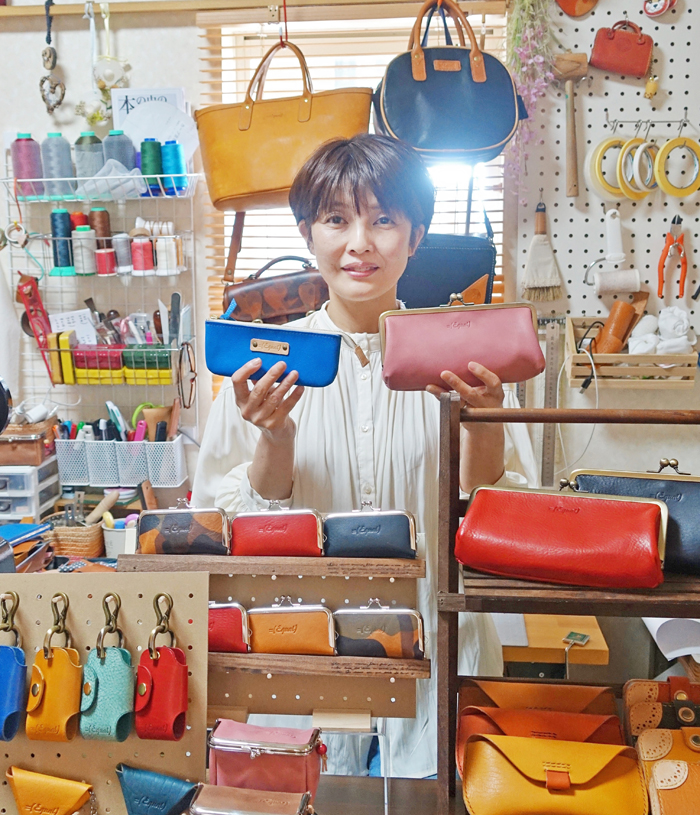以前から裁縫が好きで、最初は布で自分の洋服や子ども服などを作っていた。革で小さな靴やかばんを作ってみたこともあり、少しずつ「革で本格的に使えるものを作ろう」という気持ちに変わっていったという。3年前から大阪へ習いに行き、昨年からは作品の写真をソーシャルメディアにアップしたり、友人限定で販売したりするようになった。