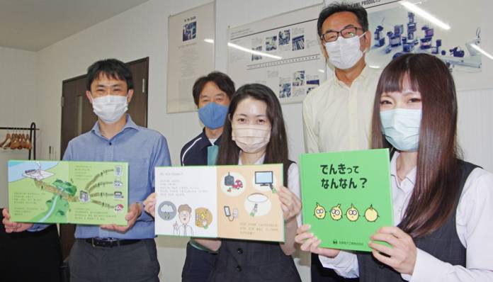 身近な電気に対する興味を子どもたちに持ってもらおうと、電子部品メーカー「加美電子工業」(本社・大阪市)の名張工場(三重県名張市薦生)の社員でつくるグループが、絵本「でんきってなんなん?」を作成した。
