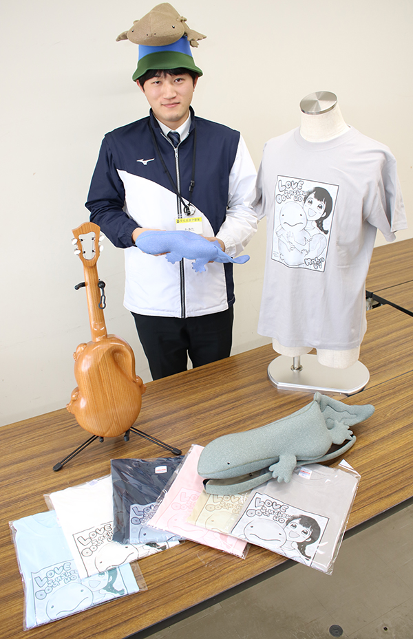 金額に応じ、返礼品はオオサンショウウオの形をしたウクレレやバッグ、小物入れ、帽子、ブローチ、クッキー、イラストをあしらったTシャツなど、さまざまな品が用意されている。