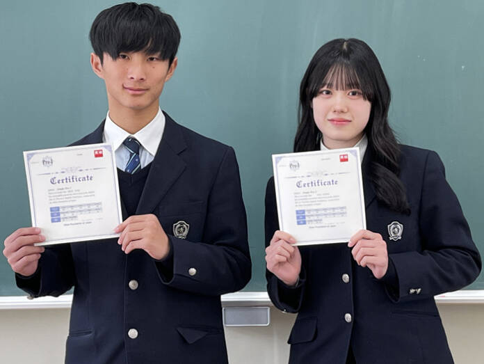 三重県立名張青峰高校3年の武田優香さん(18)と伊藤峻さん(18)が日本英語検定協会の実用英語技能検定(英検)準1級に合格した。準1級は大学中級程度の英語力が必要とされ、2人は春からの新生活への励みになると喜んでいる。