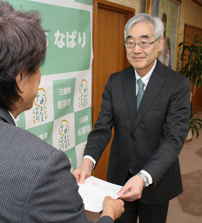 北川市長は「独法の強み、桑名のセンターでのご経験を生かし、名張の地域医療を守るとともに質の向上を図っていただければ。よろしくお願いしたい」、登内さんは「独法になると、自主性や自律性を発揮できるが、公共性も求められるので、市とよく相談をしながら総合的に頑張っていきたい」と述べた。