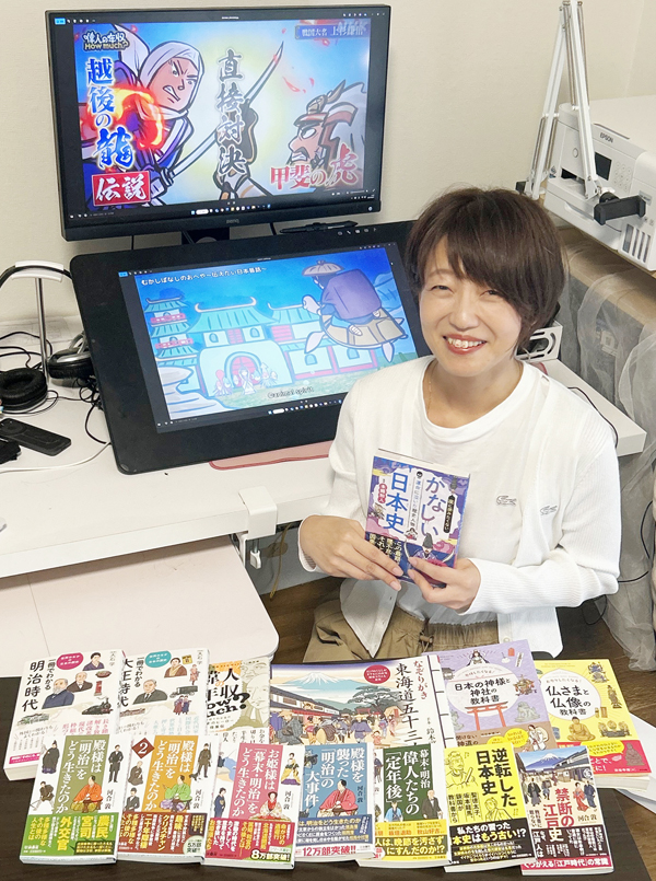 2021年、初めて表紙を描いた書籍「殿様は『明治』をどう生きたのか」(河合敦著・扶桑社)は再販になるほど売れた。以来、「なぞりがき東海道五十三次」「仏さまと仏像の教科書」「1冊でわかる明治時代」など、さまざまな出版社の出す書籍の表紙絵を手がけるようになった。今年7月には児童書「かなしい日本史」、9月2日には「侍は『幕末・明治』をどう生きたのか」が発行された。