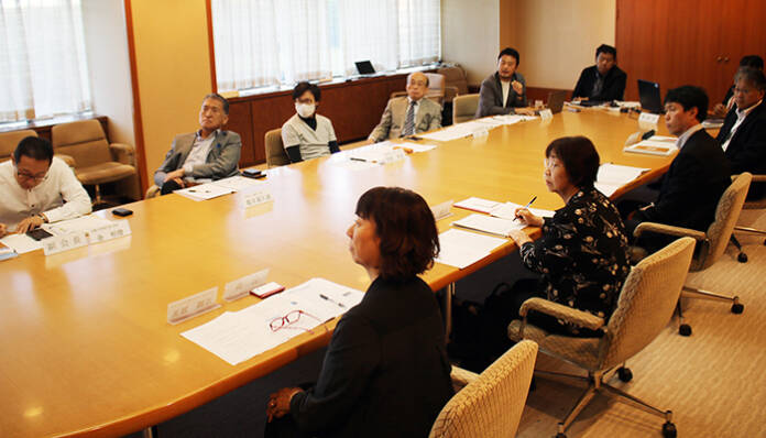 【観光戦略推進会議で名張市観光協会の説明に注目する委員ら=同市鴻之台1で】