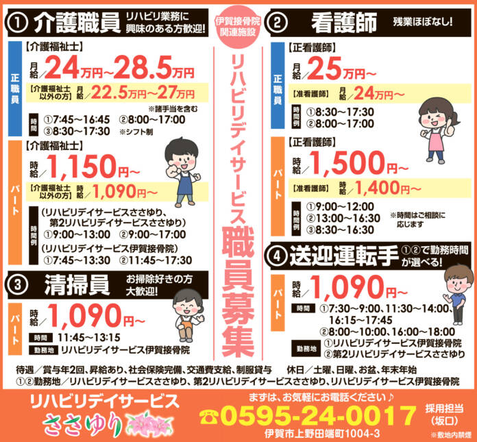 勤務地/①リハビリデイサービス伊賀接骨院②第2リハビリデイサービスささゆり