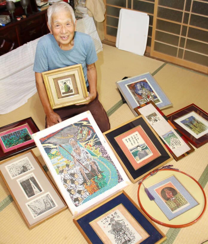 奈良県宇陀市室生三本松の木版画家、坂育夫さん(76)の個展が10月15日まで、同市室生大野の「うだ夢創の里」で開かれている。50年以上続けてきた木版画活動の集大成で、「これが最後の個展になる」と語る。