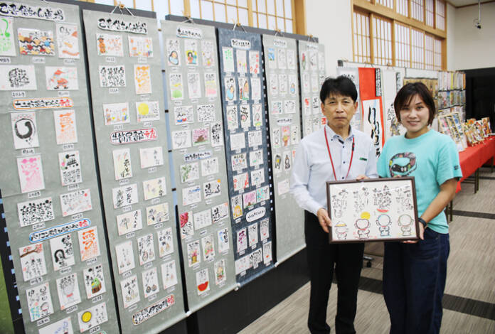 市内に住む己書師範・坂口真美さんと門下の師範8人、更にそれぞれが指導する同市の教室生らの作品計256点が並ぶ。花や果物、季節の行事など題材はさまざまで、はがきや色紙、木の板、扇子、掛け軸など、多彩な素材に描かれた作品がある。展示時間は営業時間と同じ午前9時から午後3時まで。