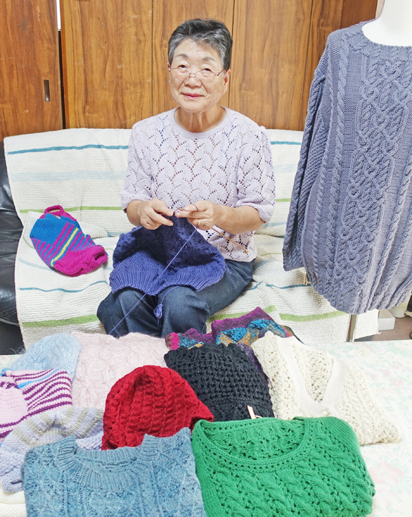 家族の衣類や近所の人に頼まれたカーディガンやベストを編んでいるうちに、近所の人たちから「教えてほしい」と頼まれ、応えるようになった。現在も衣類の依頼制作や教室での指導は続けているそうだ。