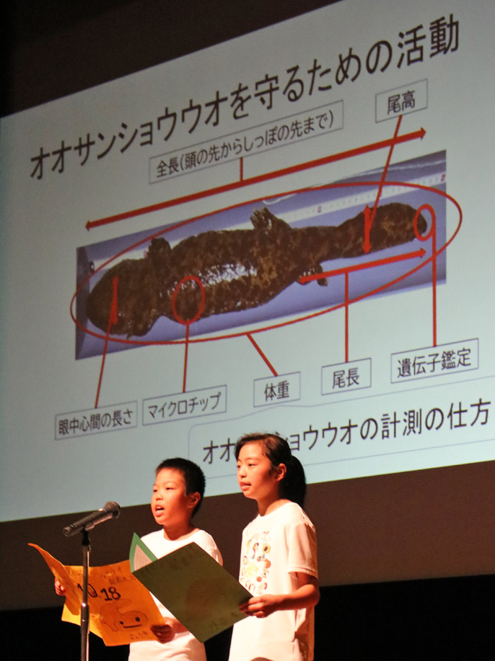 発表後、北森大晴さん(10)は「緊張したけど、思う通りに言えた。これからもオオサンショウウオの大切さを伝えたい」と話した。