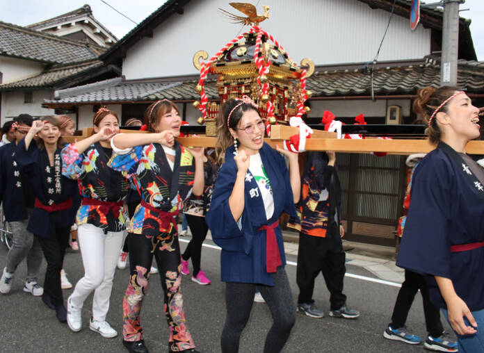 三重県名張市の宇流冨志禰神社(平尾)の秋祭りが、10月25、26の両日、旧市街地一帯で開かれる。名張商工会議所青年部(名張YEG、石田雅士会長)が中心となって企画する「女性みこし」が、今年も26日に登場する。
