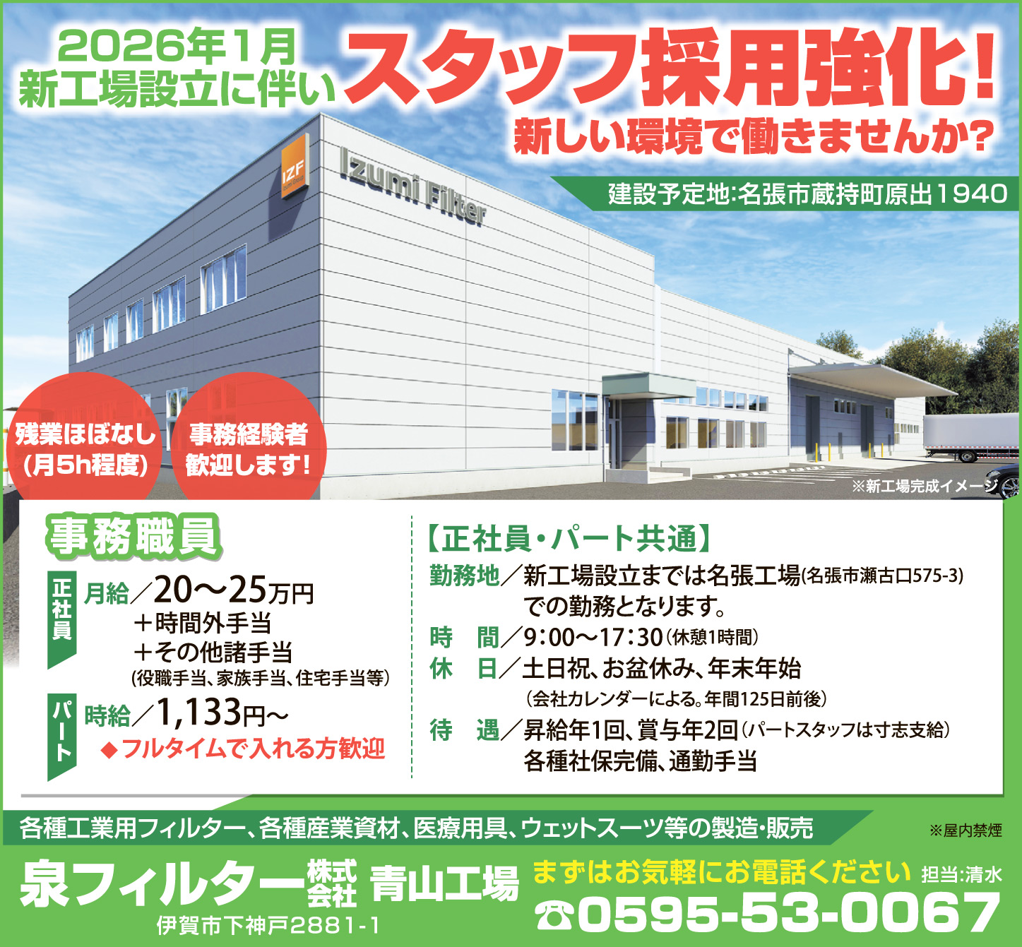 新工場設立までは名張工場(名張市瀬古口575-3)での勤務