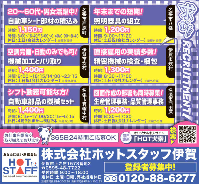 毎日更新 オリジナル求人サイト「HOT犬索」