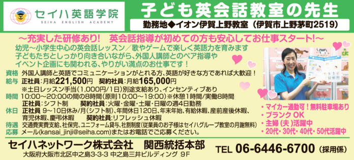 メール(kansai_jinji@seiha.com)またはお電話でご応募ください。