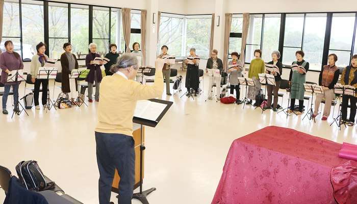 指揮する藤森唯史さんは「コロナ禍で人数が減った時もあったが、それを乗り越えて演奏会を開けるのはうれしい。詩の心、作者の気持ちを表現するよう指導している」と話す。代表の井前節子さんは「演奏会ではおなじみの曲も多いので、ゆっくり楽しんで」と呼び掛けている。