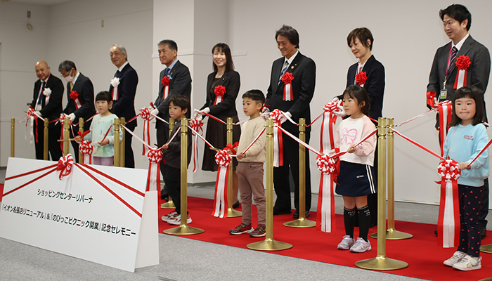 3階で開かれた記念セレモニーには北川裕之市長やイオングループの関係者、名張西保育園の園児らが出席し、テープカットで祝った。北川市長は「雨の日も猛暑の日も、長く遊べる場所を望む声が多く寄せられていた。子どもと保護者の笑顔があふれる空間になってほしい」と語った。式の後は、園児たちが真新しい遊具で元気いっぱいに遊んだ。