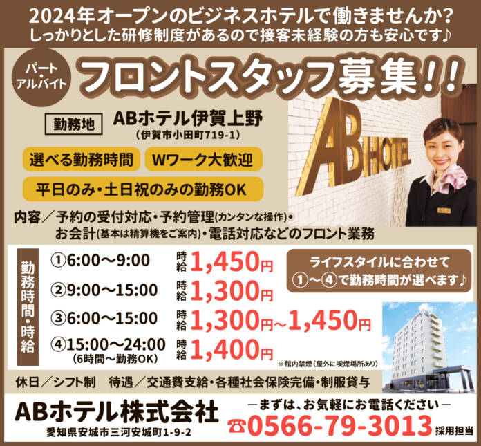 ABホテル株式会社 愛知県安城市三河安城町1-9-2 0566-79-3013【採用担当】