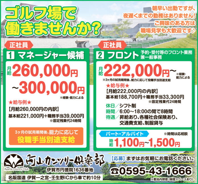 ①正社員…月給/260,000円~300,000円 ※経験・能力による