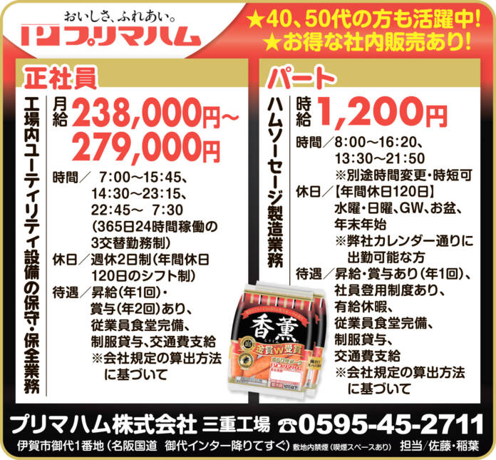 企業名 プリマハム株式会社 三重工場