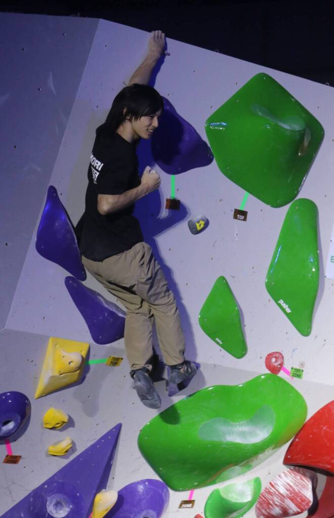 スポーツクライミングの楢崎智亜選手が監修する大会「DMG MORIクライミングフェス」(DMG森精機主催)が12月13日、三重県伊賀市ゆめが丘1のDMG MORIアリーナ第2競技場で開かれ、地元などからエントリーした約150人がボルダー種目で腕を競った。競技の合間には楢崎選手らによるデモンストレーションやサイン会などもあり、多くの市民が観覧に訪れていた。