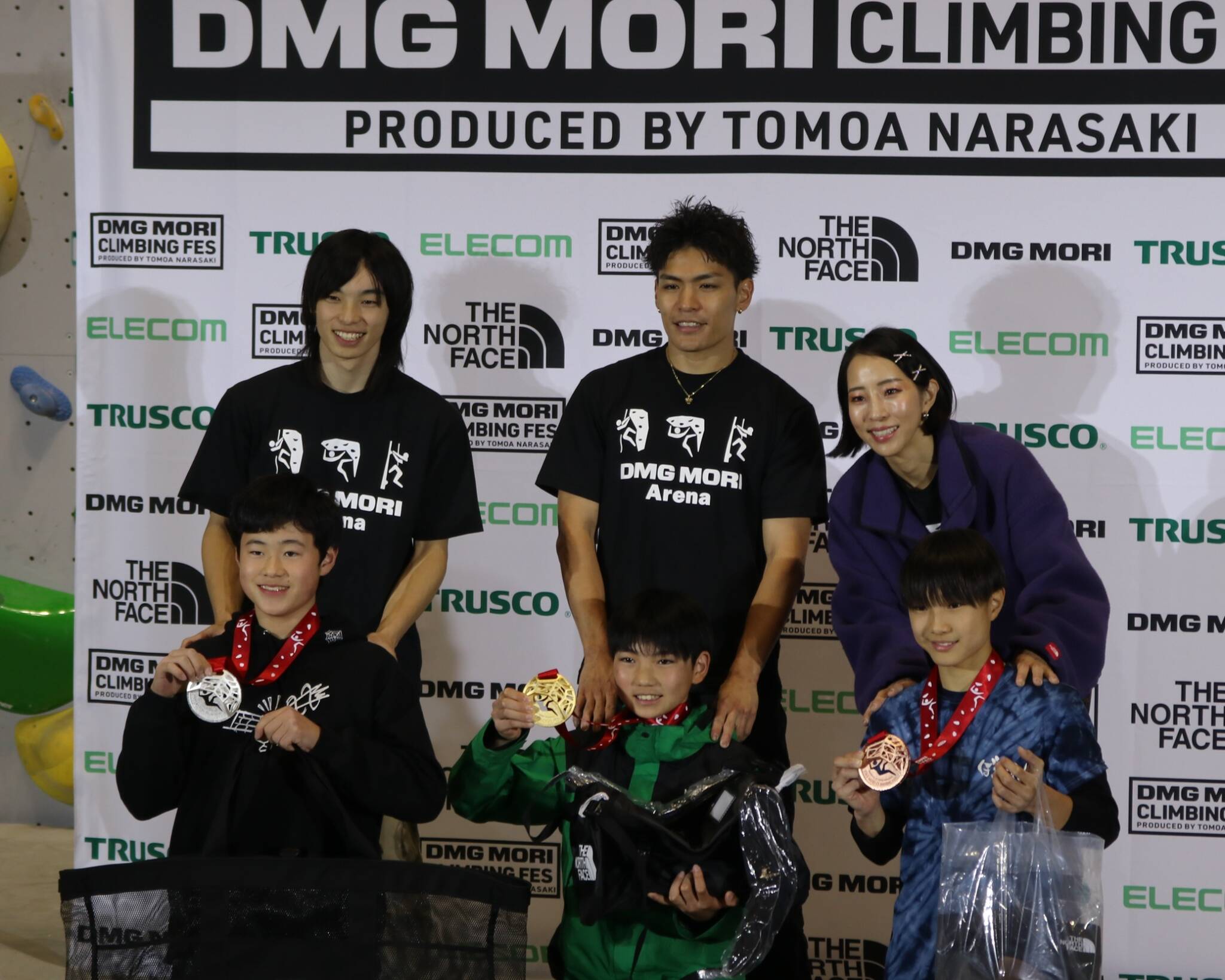 スポーツクライミングの楢崎智亜選手が監修する大会「DMG MORIクライミングフェス」(DMG森精機主催)が12月13日、三重県伊賀市ゆめが丘1のDMG MORIアリーナ第2競技場で開かれ、地元などからエントリーした約150人がボルダー種目で腕を競った。競技の合間には楢崎選手らによるデモンストレーションやサイン会などもあり、多くの市民が観覧に訪れていた。