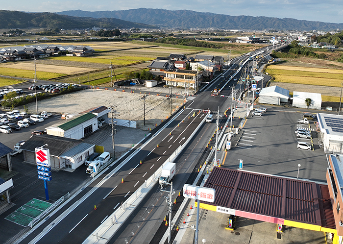 県伊賀建設事務所によると、車道や歩道などを合わせた全幅は、整備前の9メートルから20メートルに広がる。同事務所は、朝夕の通勤時間帯の渋滞緩和や救急搬送時間の短縮、物流機能の強化などが期待できるとしている。