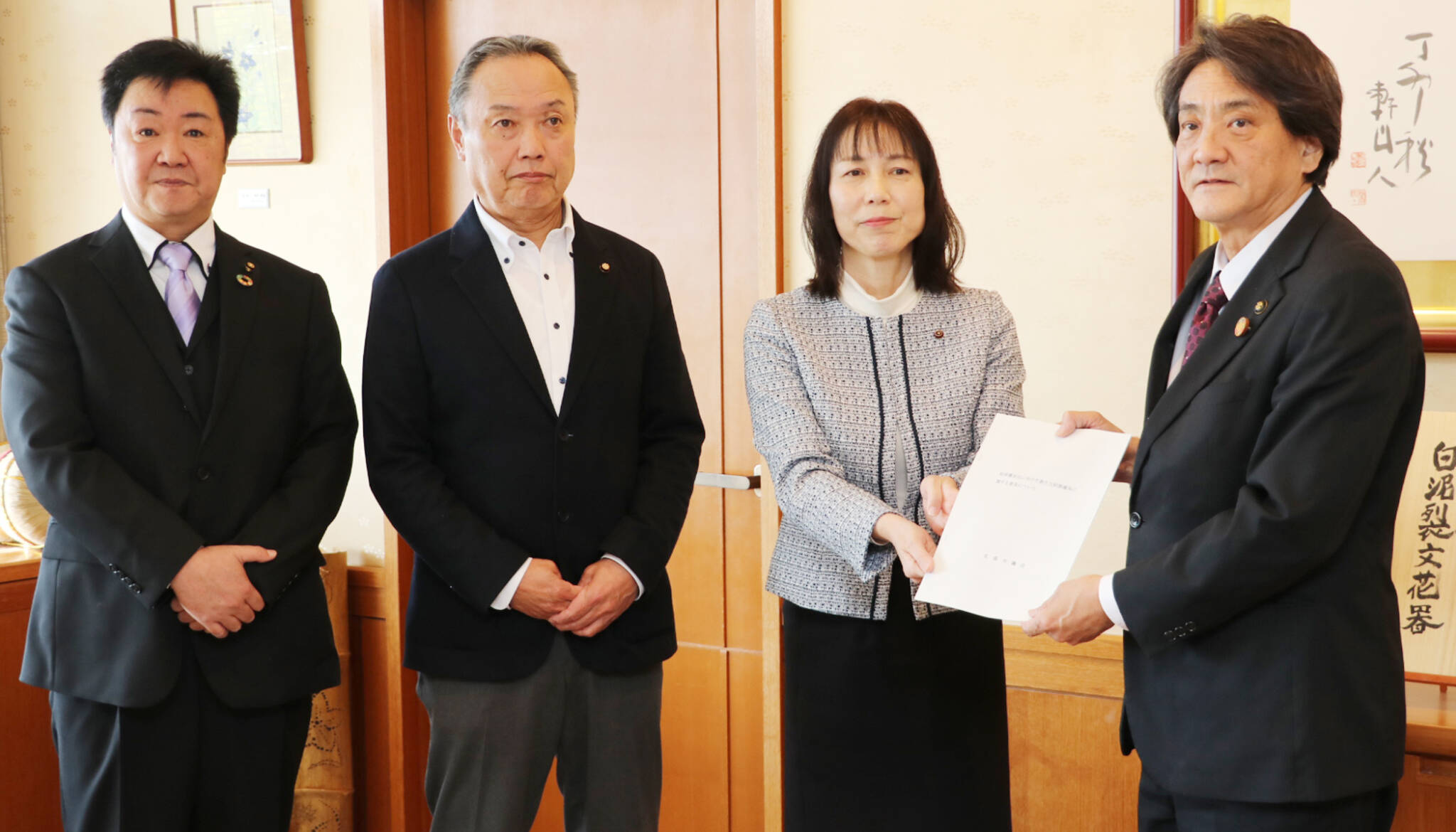市議会は他に、「ハラスメント撲滅に向けた取組の推進について」と題し、「ハラスメント撲滅宣言」の発出や職員研修の充実、相談体制の整備などを求める要望書も市に提出した。