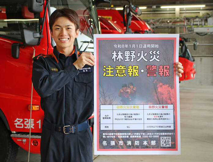 岩手県大船渡市をはじめ全国各地で大規模な林野火災が相次いだことを受け、三重県名張市は火災予防条例を改正し、新たに「林野火災注意報・警報」を設けた。2026年1月1日から運用を開始する。
