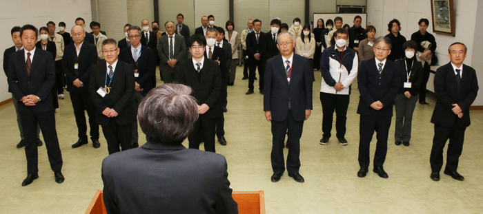 名張市役所では1階大会議室で「仕事納めの式」があり、幹部職員ら約50人が参加した。
