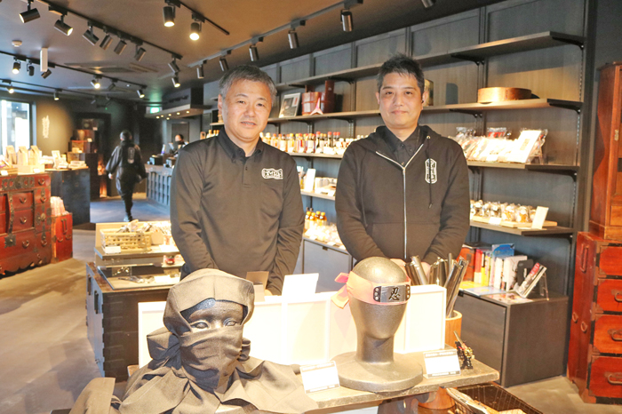 伊賀流忍者体験施設「万川集海」が三重県伊賀市上野丸之内にオープンして数か月。休日を中心に、外国人を含めた多くの観光客が来場している。開設の思い、オープン以降の反響、課題などについて、施設の管理・運営を担っている特別目的会社「株式会社伊賀市にぎわいパートナーズ」代表取締役の吉綱利明さん(51)とグループ長の浅井友和さん(50)に聞いた。