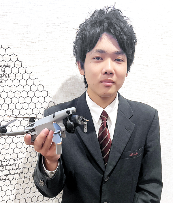 三重県伊賀市緑ケ丘南町に住む県立伊賀白鳳高校の1年生。受験資格が16歳以上のドローン国家資格「二等無人航空機操縦士」を、16歳4か月で取得した。この年齢での取得は伊賀地域でも珍しく、将来に向けて大きな一歩を踏み出した。