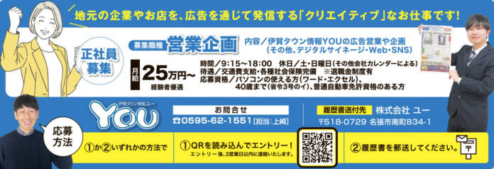 伊賀タウン情報YOUの広告営業や企画(その他、デジタルサイネージ・Web・SNS)