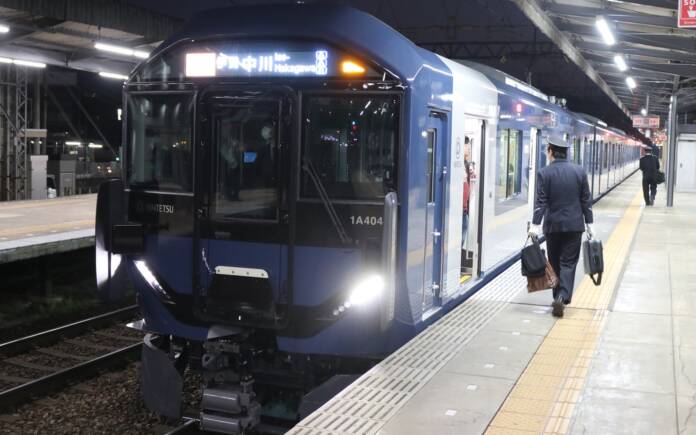 近畿日本鉄道(本社・大阪市)は1月16日、三重県の伊賀地域を通る大阪線などで、新型一般車両「1A系」の営業運転を開始した。夕方には、名張市平尾の名張駅にも新型車両を使った急行列車が入線。イメージを一新した青と白のツートンカラーに、駅利用者の視線が集まった。