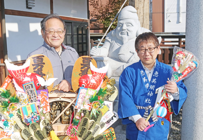 商売繁盛や家内安全などを願う、恵美須神社(三重県伊賀市上野恵美須町)の恒例行事「初ゑびす」が1月19、20日に行われる。境内は、福笹や俵などで飾られた縁起物「吉兆」を求める人たちでにぎわう。