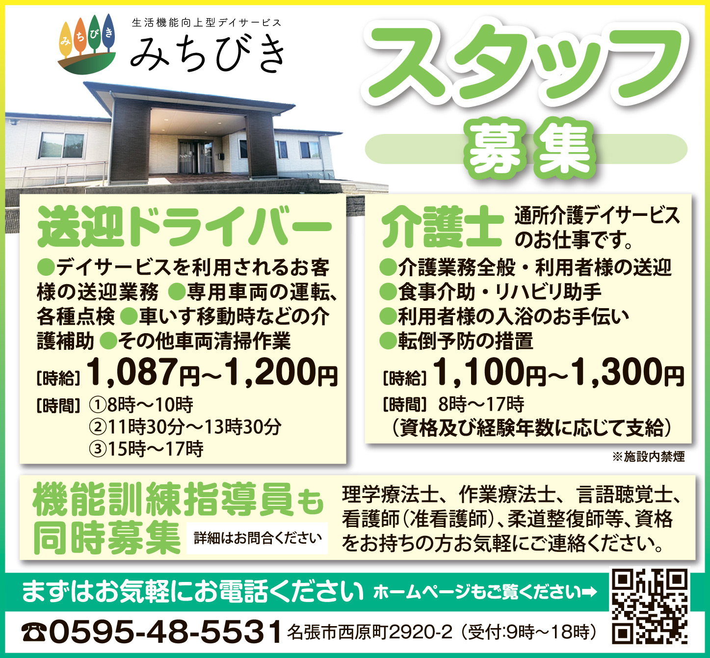 ホーム 求人情報 デイサービス みちびき 求人情報正社員パート名張 デイサービス みちびき 2026年1月23日 43 LINETwitterFacebookPinterest 紙面広告はこちらをクリック 応募方法 まずはお電話ください 応募・問合せ先 0595-48-5531 - 広告 - 同じカテゴリーの記事 求人情報 ささゆりグループ 求人情報 社会福祉法人 名張育成会 求人情報 株式会社ユー 求人情報All正社員契約社員派遣パートアルバイト伊賀名張その他の地域もっと パート職員募集 <伊賀市文化都市協会> 2026年1月9日 伊賀の企業を元気に。まちをもっと面白く。令和8年4月1日採用 正職員募集<上野商工会議所> 2026年1月9日 フォスタービジネスサービス株式会社 2026年1月23日 一般財団法人 信貴山病院分院 上野病院 2026年1月23日 ニュースAll総合事件・事故議会・行政紙面もっと 総合 民間の力で介護予防に新展開 赤目滝も舞台に 名張市 総合 地域安全で協定締結 伊賀署と伊賀上野ケーブルテレビ 紙面 将来の「夢」名張で見つけて 小学生向け仕事体験イベント 25日・アスピア 紙面 学んだ知識・技術を披露 伊賀白鳳高デザインコース卒展 24日から