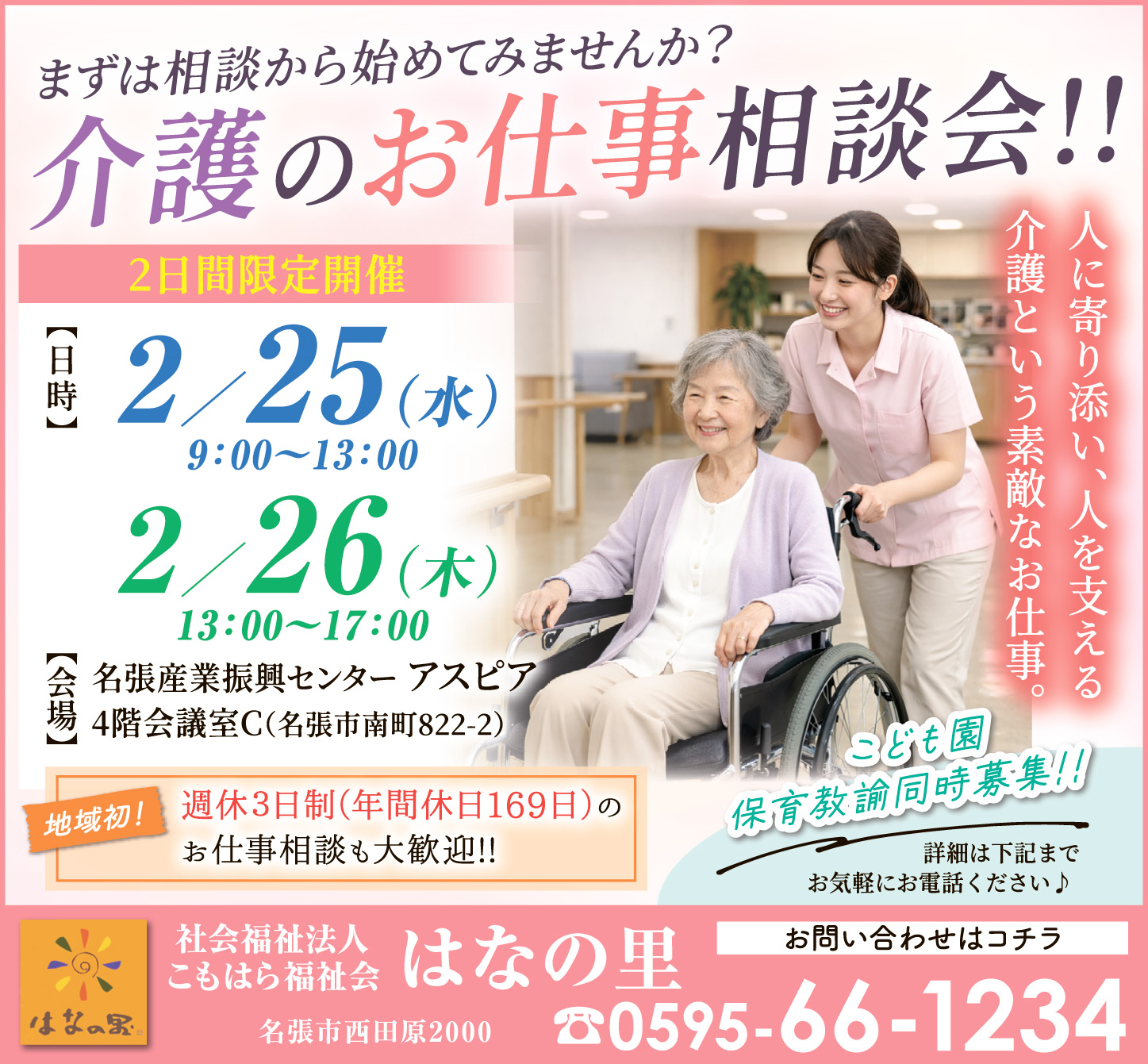 ホーム 求人情報 社会福祉法人 こもはら福祉会 はなの里 求人情報正社員名張 社会福祉法人 こもはら福祉会 はなの里 2026年2月13日 36 LINETwitterFacebookPinterest 紙面広告はこちら 応募方法お電話にてお問い合わせください。 応募・問合せ先0595-66-1234 - 広告 - 同じカテゴリーの記事 求人情報 株式会社ウサミ 求人情報 株式会社ユー 求人情報 シダックス大新東ヒューマンサービス㈱近畿支店 滋賀営業所 求人情報All正社員契約社員派遣パートアルバイトその他伊賀名張その他の地域もっと モリシマ商事 2026年1月23日 株式会社 大栄工業 2026年2月13日 株式会社図書館流通センター 関西支社 2026年2月13日 社会医療法人 畿内会 岡波総合病院 2026年1月23日 ニュースAll総合事件・事故議会・行政紙面もっと 総合 春呼ぶ「修正会」 たいまつの火と水舞う結願法要 伊賀・島ヶ原 紙面 城下町彩る「おひなさん」 伊賀・上野本町通り周辺 3月3日まで 総合 3月14日にダイヤ変更 伊賀鉄道 紙面 「SRHR」学ぼう 14日に名張で講座