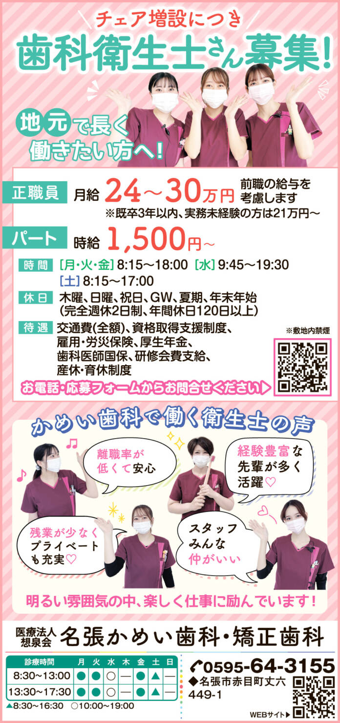 ホーム 求人情報 名張かめい歯科・矯正歯科 求人情報正社員パート名張 名張かめい歯科・矯正歯科 2026年2月13日 34 LINETwitterFacebookPinterest 紙面広告はこちらをクリック 応募方法お電話・応募フォームからお問合せください 応募・問合せ先①お電話/0595-64-3155②応募フォーム/こちらをクリック - 広告 - 同じカテゴリーの記事 求人情報 株式会社ウサミ 求人情報 株式会社ユー 求人情報 シダックス大新東ヒューマンサービス㈱近畿支店 滋賀営業所 求人情報All正社員契約社員派遣パートアルバイトその他伊賀名張その他の地域もっと 社会医療法人 畿内会 岡波総合病院 2026年1月23日 フォスタービジネスサービス株式会社 2026年1月23日 名阪チサンカントリークラブ 2026年1月23日 デイサービス みちびき 2026年1月23日 ニュースAll総合事件・事故議会・行政紙面もっと 総合 春呼ぶ「修正会」 たいまつの火と水舞う結願法要 伊賀・島ヶ原 紙面 城下町彩る「おひなさん」 伊賀・上野本町通り周辺 3月3日まで 総合 3月14日にダイヤ変更 伊賀鉄道 紙面 「SRHR」学ぼう 14日に名張で講座