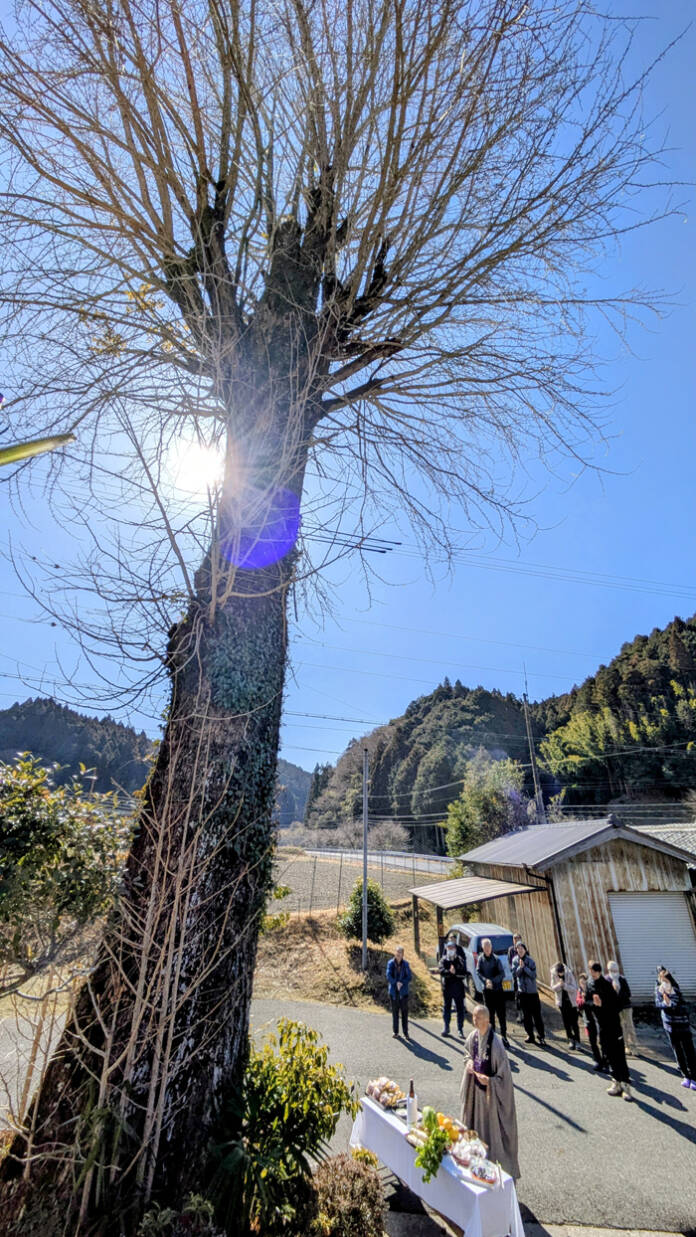 三重県伊賀市諸木の安楽寺山門前にあるイチョウの巨木が伐採されることになり、2月17日、現地で木の供養と作業の安全を願う法要あった。住民ら約15人が参列し、長い間親しまれた地区のシンボルに別れを告げた。伐採は21日から3日間の日程で行われる。