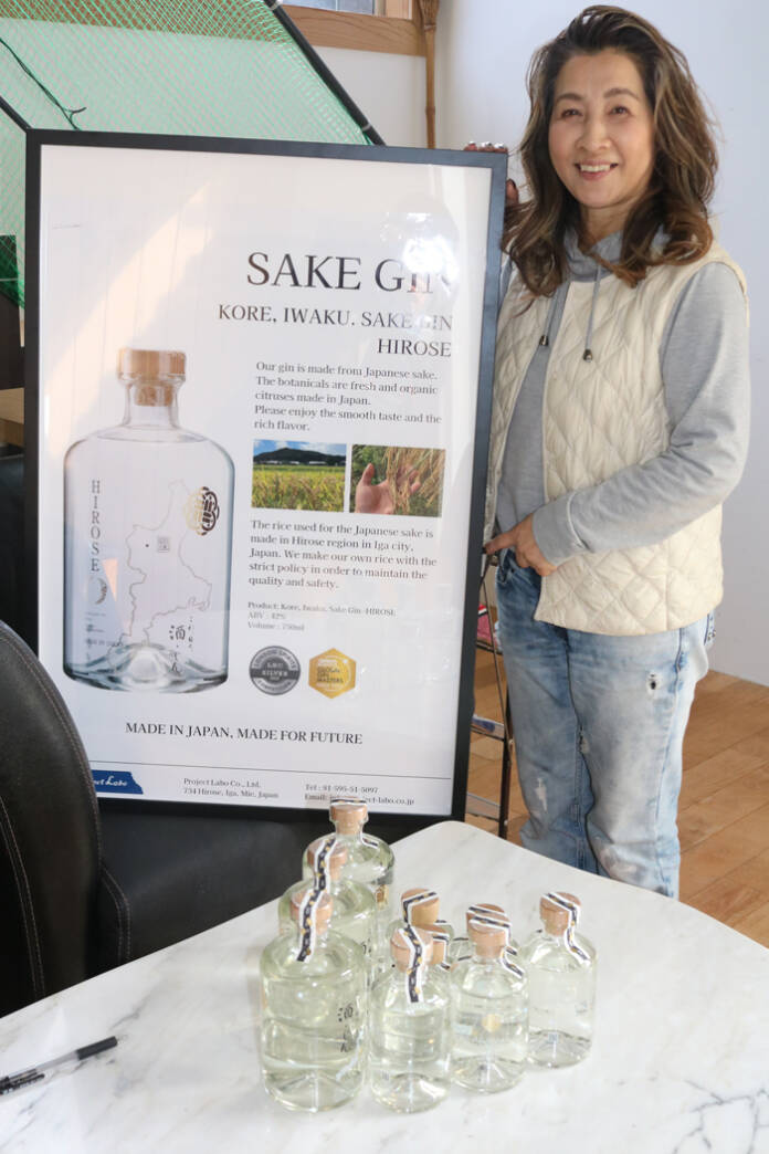 「『酒ジン』という新しいカテゴリーを作りたい」。日本酒を蒸留して造ったジン「これ、曰く。酒・じんHIROSE」を前に、明るく話す東山さおりさん(56)。大麦やライ麦などの穀物を蒸留して作る一般的なジンと異なる日本酒ベースのジンの販売に取り組むため、2021年に設立した株式会社「プロジェクト・ラボ」(三重県伊賀市広瀬)の社長だ。