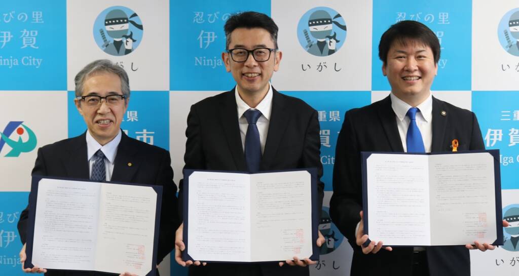 また、高齢者の利用が見込まれることから、同社と市、伊賀市社会福祉協議会の三者が、移動販売車の運転手が利用者の体調不良や異変などに気付いた場合、迅速に警察・消防へ連絡することなどを盛り込んだ「買い物支援と地域の見守り活動推進に関する協定」をこの日に結んだ。