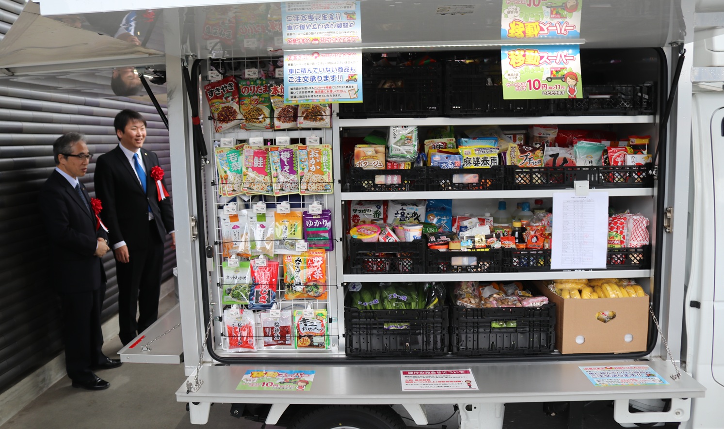 扱う商品は、肉、魚、野菜、豆腐、牛乳、パン、加工食品、調味料、菓子、日用品などで、商品1点につき手数料10円(税別)を上乗せする。現金、クレジットカード、電子マネーなどでの支払いも可能。利用申請などの手続きは不要で、移動販売車に無い商品の注文もできるという。
