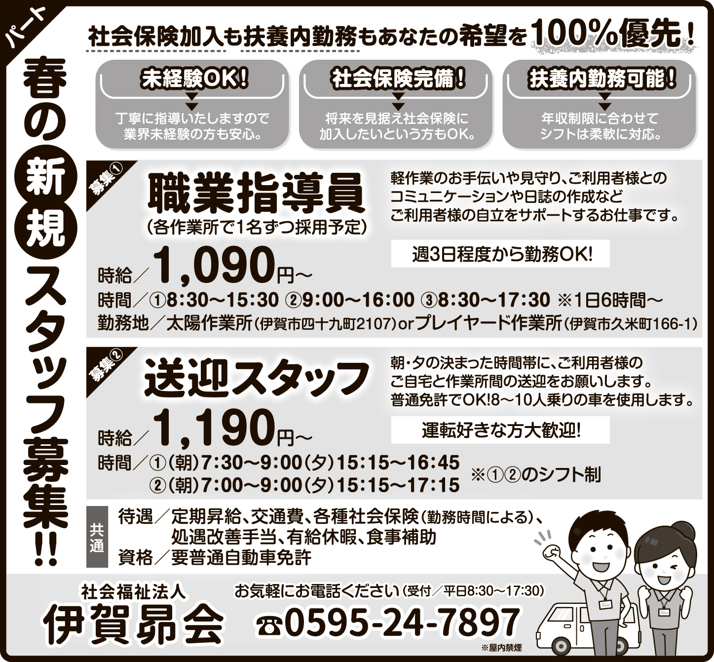 ホーム 求人情報 社会福祉法人 伊賀昴会 求人情報パート伊賀 社会福祉法人 伊賀昴会 2026年2月27日 31 LINETwitterFacebookPinterest 紙面広告はこちらをクリック 雇用形態パート 応募方法お気軽にお電話ください。 応募・問合せ先0595-24-7897(受付/平日8:30~17:30)※採用担当者まで - 広告 - 同じカテゴリーの記事 求人情報 有限会社エイワ運輸 求人情報 ZACROS株式会社 名張事業所 求人情報 美容室 pele+bro(ペレ・ブロー) 求人情報All正社員契約社員派遣パートアルバイトその他伊賀名張その他の地域もっと 美容室 pele+bro(ペレ・ブロー) 2026年2月27日 特別養護老人ホーム つつじの丘高齢者総合福祉施設 都祁すずらん苑 2026年2月27日 株式会社ジャスト・ビー 2026年2月24日 社会医療法人 畿内会 岡波総合病院 2026年2月27日 ニュースAll総合事件・事故議会・行政紙面もっと 紙面 改めて知る画家・濵邉萬吉の世界 遺作展27日から 伊賀市のギャラリーで 議会・行政 名張市、中学校給食29年9月開始目標 小学校もセンター集約方針 議会・行政 施政・予算編成方針「持続可能なまちづくり着実に」 稲森・伊賀市長 議会・行政 3月定例議会始まる 名張市議会