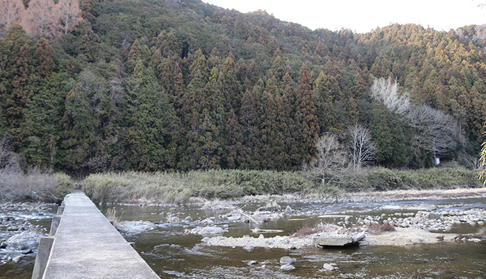 現場は名張川に架かる朝日町潜水橋から北東約250メートル。7日午前9時30分ごろ、登山者の親子が発見したという。