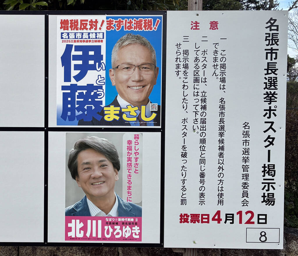 任期満了に伴う三重県名張市長選と市議選が4月5日、告示され、1週間の選挙戦がスタートした。市長選の立候補者は、届け出順に、新人で元四日市市議の伊藤昌志氏(56)と再選を目指す現職の北川裕之氏(67)=自民、立憲、公明、国民推薦=で、いずれも無所属。