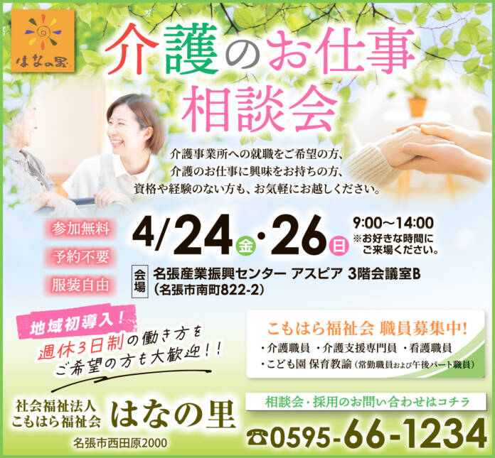 ホーム 求人情報 社会福祉法人 こもはら福祉会 はなの里 求人情報正社員名張 社会福祉法人 こもはら福祉会 はなの里 2026年4月10日 44 LINETwitterFacebookPinterest 紙面広告はこちらをクリック 応募方法お電話にてお問い合わせください。 応募・問合せ先0595-66-1234 - 広告 - 同じカテゴリーの記事 求人情報 社会福祉法人 名張育成会 求人情報 株式会社 大栄工業 求人情報 藤澤建機株式会社 求人情報All正社員契約社員派遣パートアルバイトその他伊賀名張その他の地域もっと ABホテル株式会社 2026年4月10日 社会福祉法人創生会 グッドタイムクラブやぶっちゃ 2026年3月27日 武田産婦人科 2026年3月27日 社会医療法人 畿内会 岡波総合病院 2026年3月27日 ニュースAll総合事件・事故議会・行政紙面もっと 紙面 「記憶の稜線を歩く」現代美術作家・藤原康博さん個展 10日から伊賀で 紙面 名張警察署だより 年度初めのあいさつ 紙面 高校野球春季県大会11日開幕 伊賀から2校出場 3球場で開催 事件・事故 自動車販売店に侵入しタイヤ9本窃盗疑い 男2人逮捕 名張署