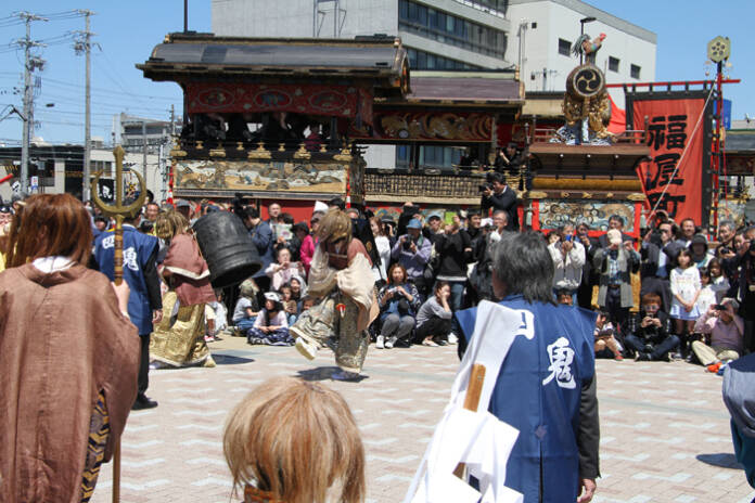 数十体の鬼行列は横一列に並んだだんじり周辺をほら貝や太鼓に合わせて練り歩き、小玉町が祭りの練物としてかつて出していた「七福神」も2017年のイベント時以来の登場となる。