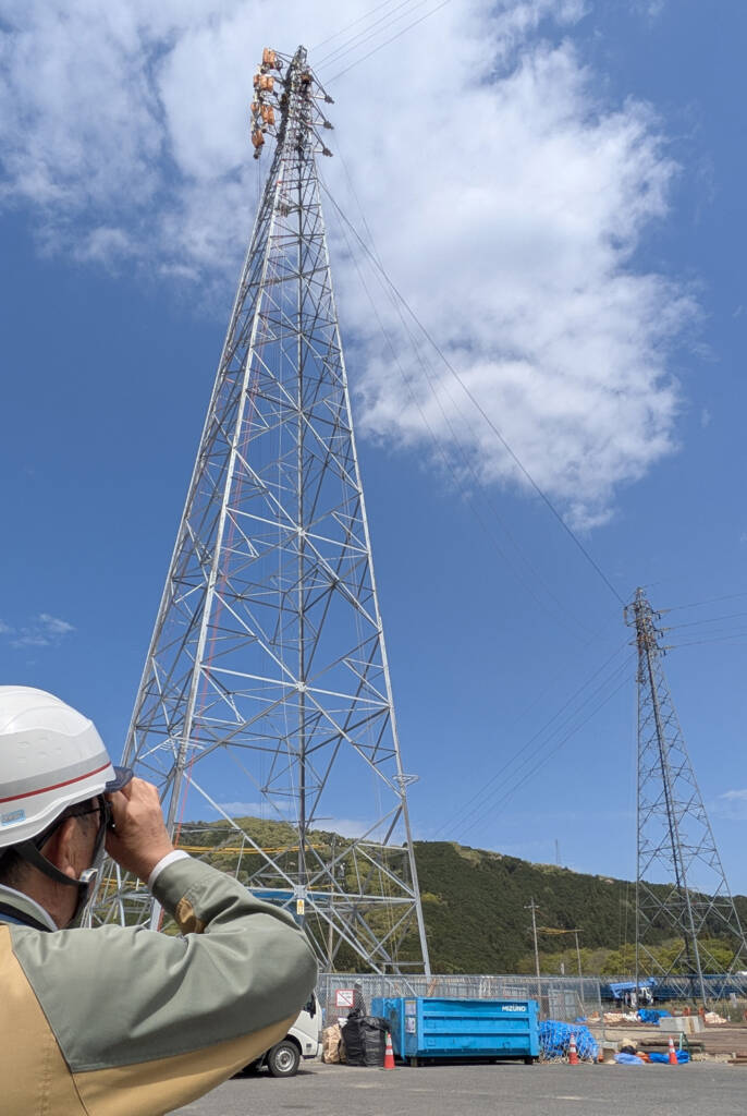 新しい鉄塔は昨年1月に建てられたもので、電線の移設を経て4月中には約7万7000ボルトの送電を開始する。この送電ルートは同市西部の電力供給を担っている。